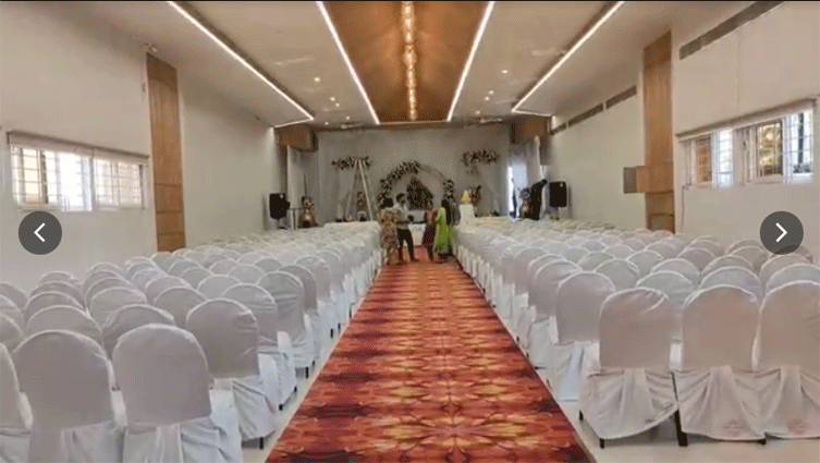 ROYAL CONVENTION CENTER IS FULLY AIR- CONDITIONED 15000 SQ.FT HALL LOCATED IN THE ALUVA- PERUMBAVOOR TRANSPORT ROUTE. THE HALL CAN SEAT 1800 PAX COMFORTABLY. GUESTS CAN DINE IN STYLE IN THE ATTACHED A/C DINING HALL WHICH SEATS 400 PAX AND NON A/C 200 PAX. AMPLE ON-SITE PARKING, WHEEL CHAIR ACCESS, HANDICAPPED WASHROOM, CUSHIONED CHAIRS, HI TECH AMENITIES, GUARANTEED POWER BACKUP FACILITY ALL ARE AVAILABLE. ROYAL CONVENTION CENTER MES COLLEGE ROAD, MARAMPALLY, ERNAKULAM, 683105,